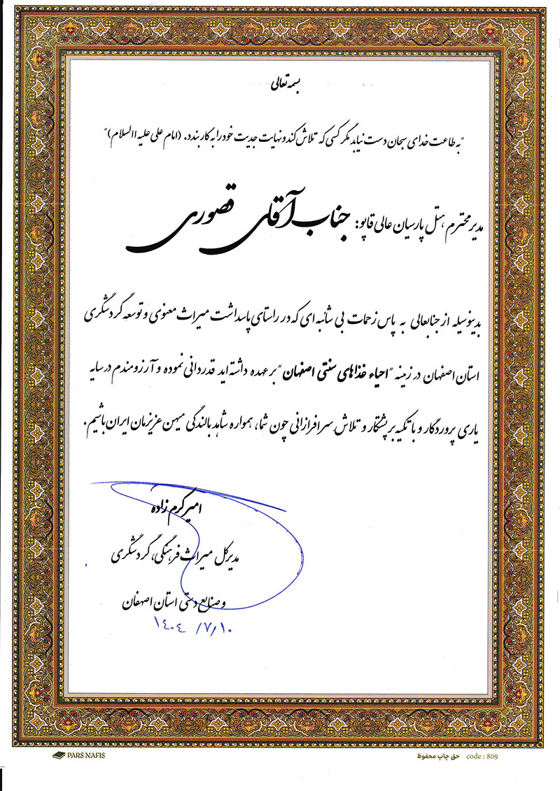 دکتر کرم‌زاده، مدیرکل محترم میراث فرهنگی، صنایع دستی و گردشگری استان اصفهان:
